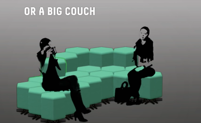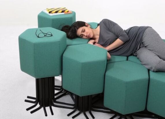 据报道,出自瑞士设计师之手的家具lift-bit,由多个正六边形的单座式单元组成,每个重25公斤,各自可以独立升降。用户只需要依照房间的大小来放置lift-bit,再把它们以WiFi连接到手机的配套程序,就可以指挥它们升降变形组合,搭配成沙发、床铺、桌子等不同家具。